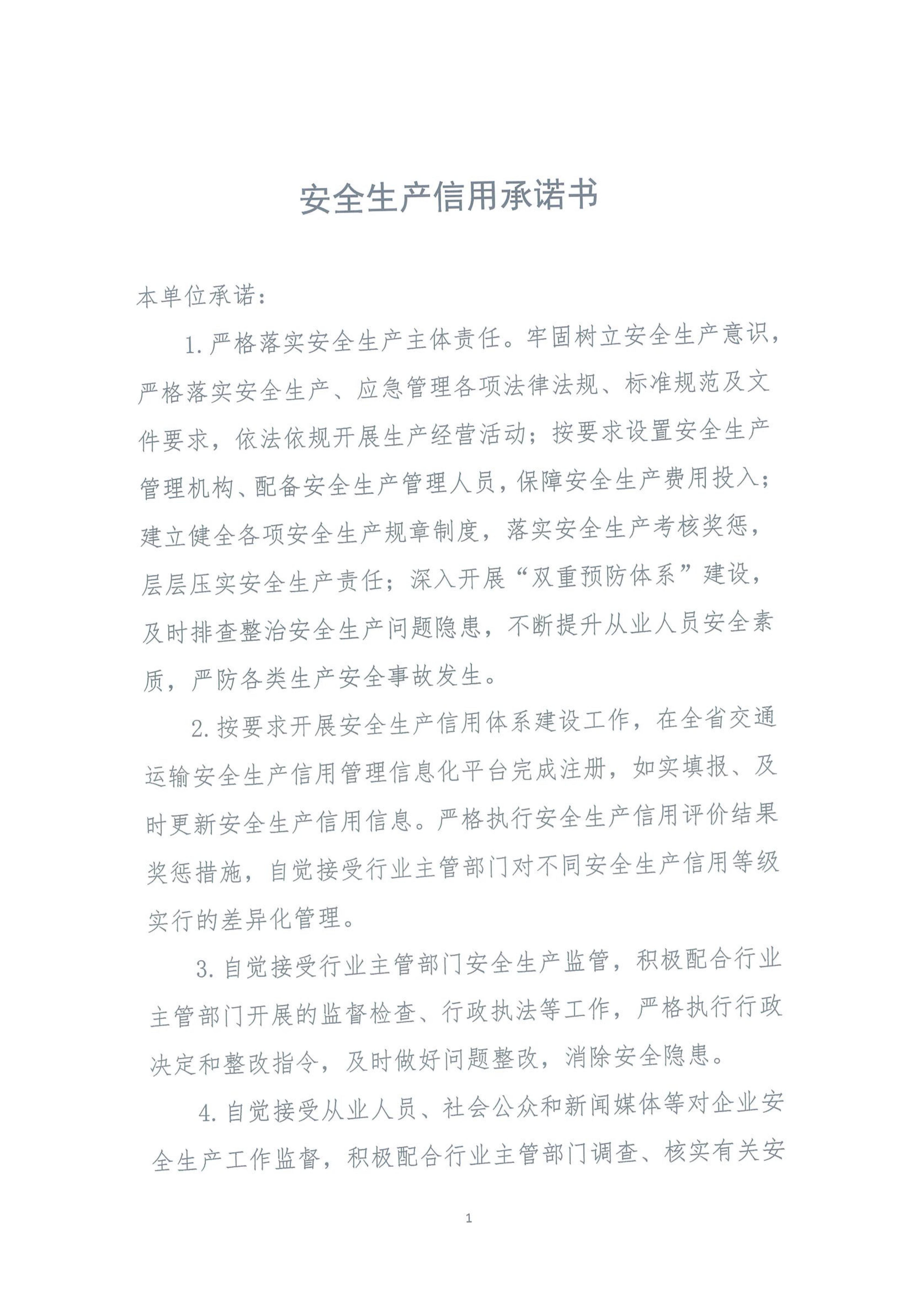 安全生产信用承诺书