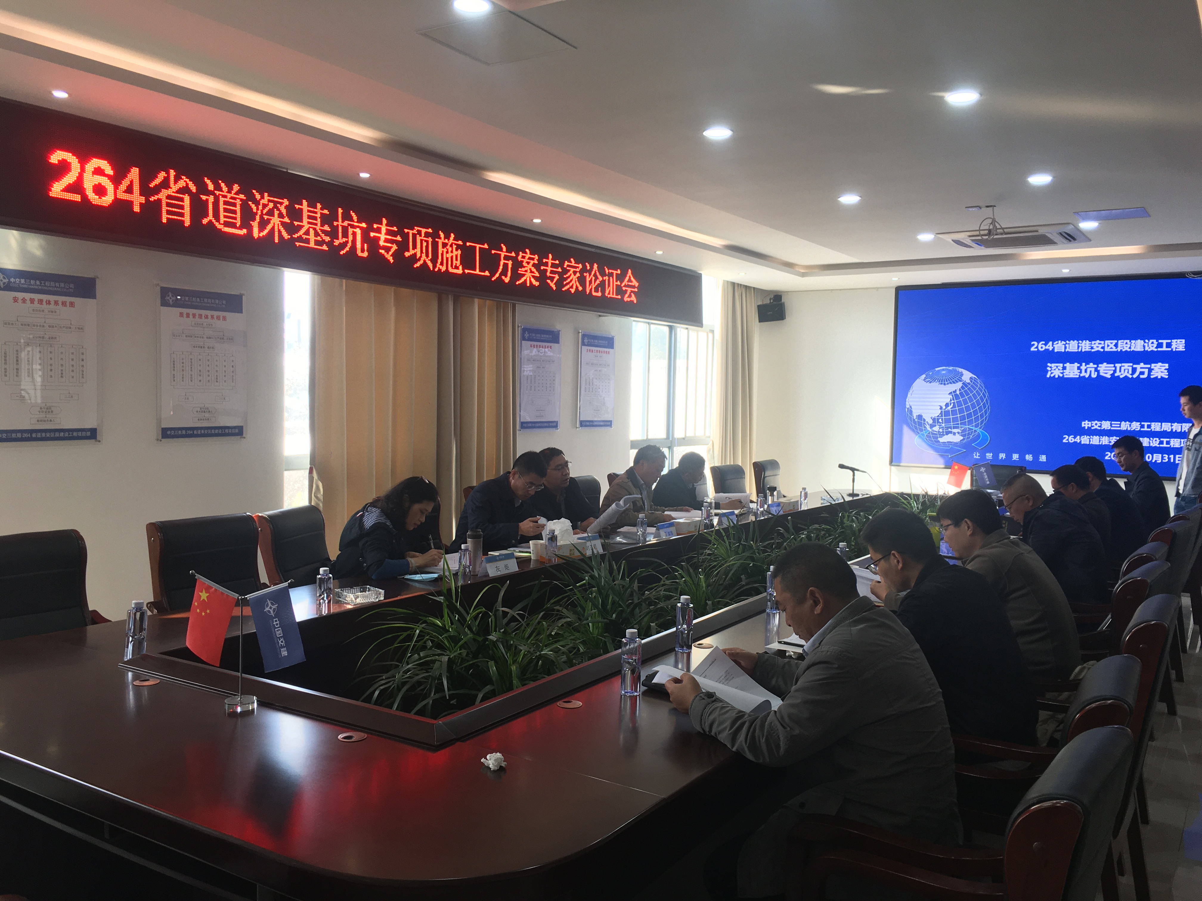 2021年11月11日,本项目组织了专家成员组,建设单位项目负责人,监理单位监理工程师及相关人员,施工单位项目负责人及技术负责人、相关安全负责人专项方案编制人员、专职安全员,勘察设计单位进行264省道深基坑专项方案讨论会。会上,专家根据基坑特点,提出了施工方案的具体措施及施工方法,重大危险源的安全保障和环保措施、应急救援措施;成品保护方法及措施;施工注意事项等。