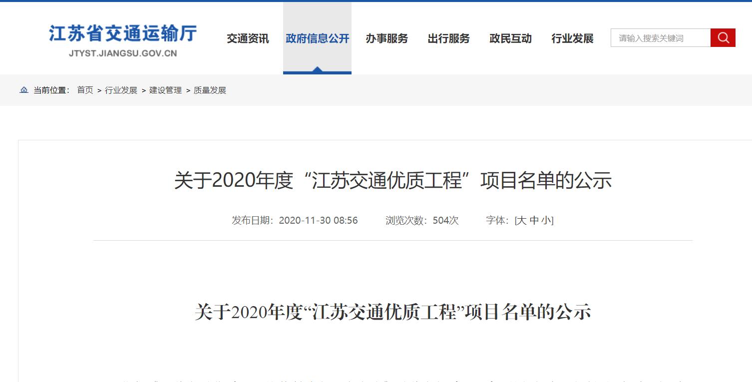依据《江苏交通优质工程挂牌创建与评审办法》(苏交规〔2018〕3号)规定,江苏省交通运输厅评定10个工程项目为2020年度“江苏交通优质工程”,我KAIYUN.COM·开云「中国」官方网站